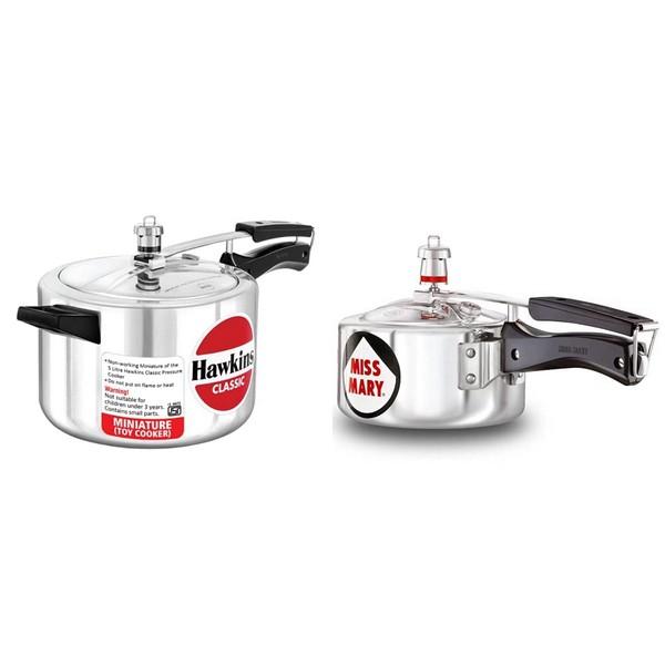 Colour: Silver, Aluminium body and lid. A faithful, non-working miniature reproduction of the 5 Litre Hawkins Classic Pressure Cooker. Do not put on flame or heat. The body diameter is just 5.4 cm!. The Hawkins Miniature Cooker comes individually packed in a scaled-down version of the Hawkins 5 Litre unit carton. Warning! Not suitable for children under 3 years. Contains small parts. A faithful, non-working miniature reproduction of the 5 Litre Hawkins Classic Pressure Cooker - the body diameter is just 5.4 cm! Do not put on flame or heat. Warning - Not suitable for children under 3 years. Contains small parts.