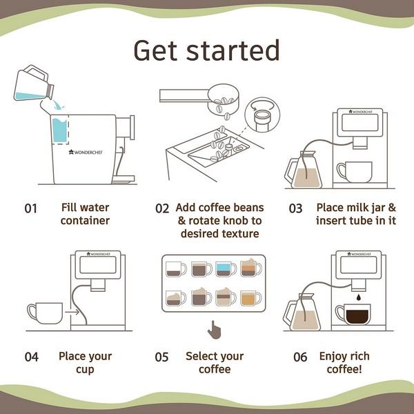 One-Touch Coffee Experience: Wonderchef Regenta 20-Bar Automatic Coffee Maker allows you to enjoy your favourite coffee with simple touch of a button. Just Choose your favourite coffee on the LCD panel and create the perfect espresso shot, hot cappuccino or latte.