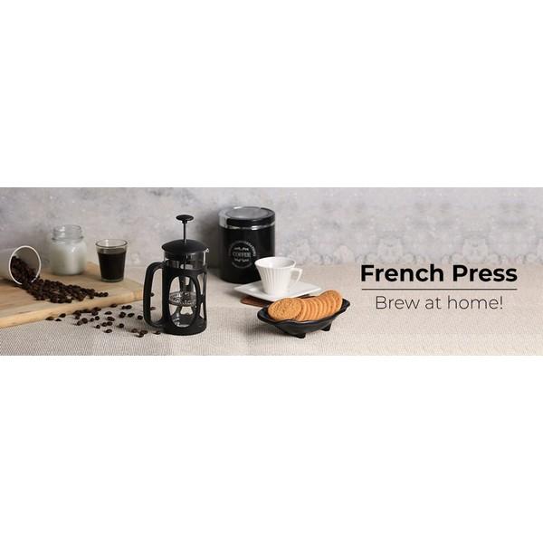 EASY BREWING PROCESS: Simply add a spoonful of coffee powder per cup to the jar, ensuring the grind is on the coarse side as per French Press specifications. Add boiling water, then push the stainless steel plunger halfway down to initiate the brewing process. After 3 minutes, push the plunger all the way down, and your coffee is ready to pour.