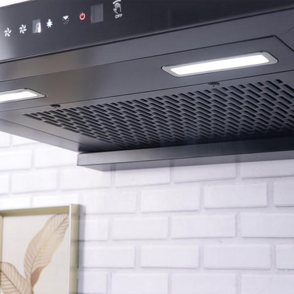 Classy and efficient low noise chimneys, with LED lights, powerful suction capacity of 1400 M 3 / h , gesture and touch control for speed and power, LED light, tempered glass, auto-clean technology.